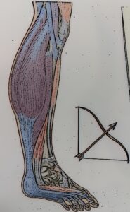 ふくらはぎの筋肉(腓腹筋とアキレス腱)と足の裏のすじ(足底筋膜)は一般的な解剖学だと単体の物として考えますが、アナトミートレインの理論では繋がっていると考えます。